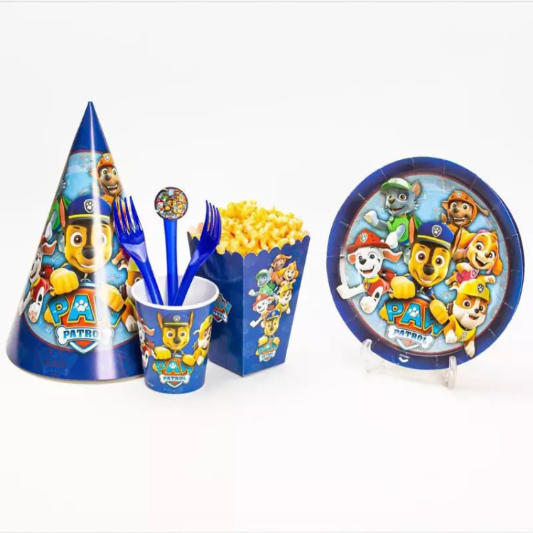 پک تم تولد سگ نگهبان محتویات داخل جعبه شامل : چنگال 10 عدد بشقاب 10 عدد لیوان 10 عدد پاپکورن 10 عدد و ریسه 2.5 متری