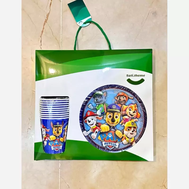 پک تم تولد سگ نگهبان محتویات داخل جعبه شامل : چنگال 10 عدد بشقاب 10 عدد لیوان 10 عدد پاپکورن 10 عدد و ریسه 2.5 متری